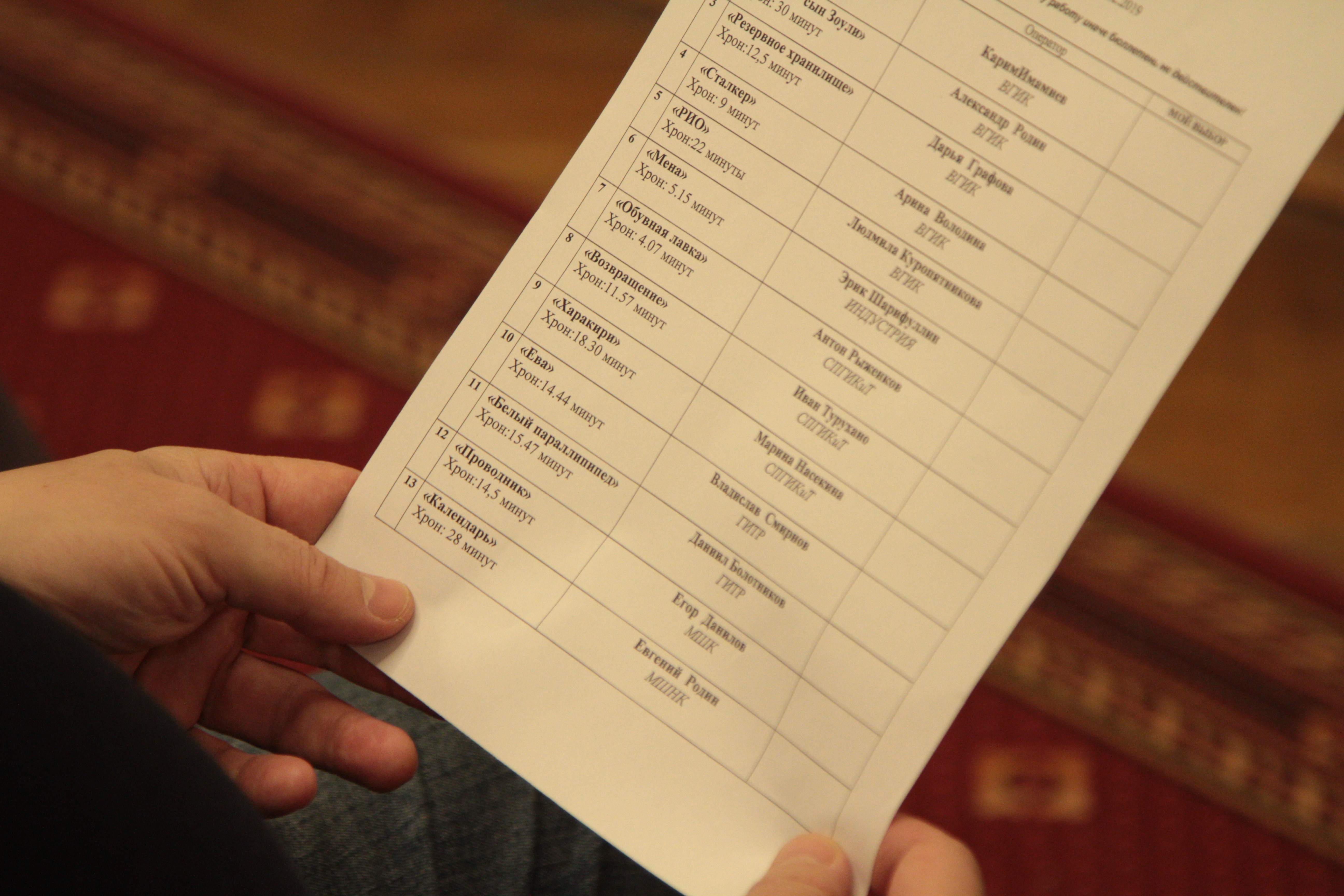3 декабря в Белом Зале Дома Кино состоялся показ студенческих работ в рамках конкурса RGC на лучшую операторскую работу в студенческом фильме. Ведущие киновузы Москвы и Санкт-Петербурга отобрали 13 работ, из которых жюри RGC выбрало работу, которая отправится на европейский конкурс IMAGO на соискание приза за лучшую операторскую работу в студенческом короткометражном фильме. Члены жюри долго и горячо обсуждали каждую работу — все они обладали своими художественными особенностями и каждая была в своей степени уникальна. В итоге главный приз достался дипломной работе выпускника Московской Школы Кино оператора Егора Данилова — короткометражному фильму «Проводник», который был отмечен смелыми световым и цветовым решениями. Посетители мероприятия также имели возможность проголосовать за лучшую работу, и Приз зрительских симпатий получила дипломная работа выпускника ВГИКа Александра Родина — исторической короткометражке «Сайти — Сын Зоули». Кроме того, специального приза жюри были удостоены еще две работы — «Освобождение» Карима Имамиева из ВГИКа и «Календарь» Евгения Родина из МШНК.